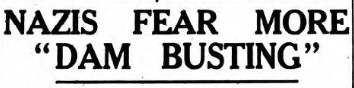 Billions of gallons of water thundered down two of Germany’s greatest industrial valleys tonight, sweeping bridges and power plants before it and flooding vital Ruhr war production areas, as the result of an RAF raid last night in which two of the biggest dams in the Nazi Reich were broken.