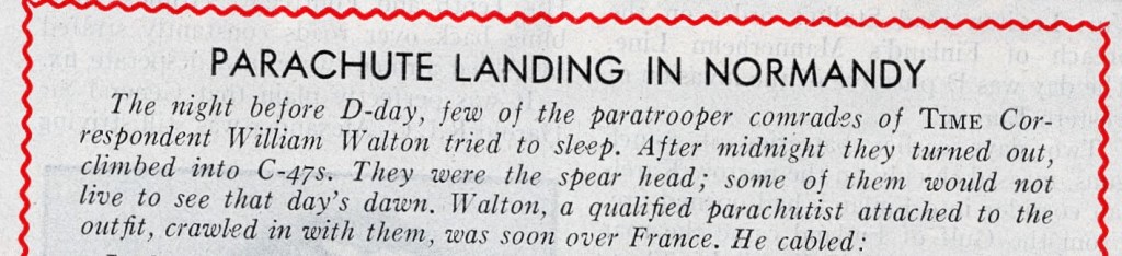 So began Walton’s adventure in Normandy, which would merit a relatively brief item in the June 19 issue of Time. The piece concluded with Walton describing the scene on D + 3, June 9: