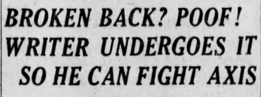 Whitaker had injured a vertebra while boxing during his college days at the University of the South. It hadn’t bothered him until about 1940 when, according to an interview his father gave to the Associated Press, he “stepped off a street curb and chanced to sneeze at the same time. This completed the fracture and he’d been having trouble with it since.”