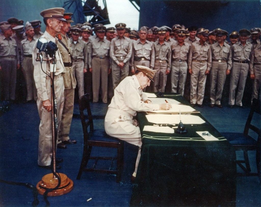 Those words from Webley Edwards of CBS greeted listeners tuning in across America to hear the news they’d awaited for so long. Japan’s surrender on September 2, 1945 was a more formal ceremony than the meeting in Reims nearly four months earlier that had ended the European war, with more than two weeks of lead time after Emperor Hirohito’s public capitulation on August 15 to arrange the proceedings.